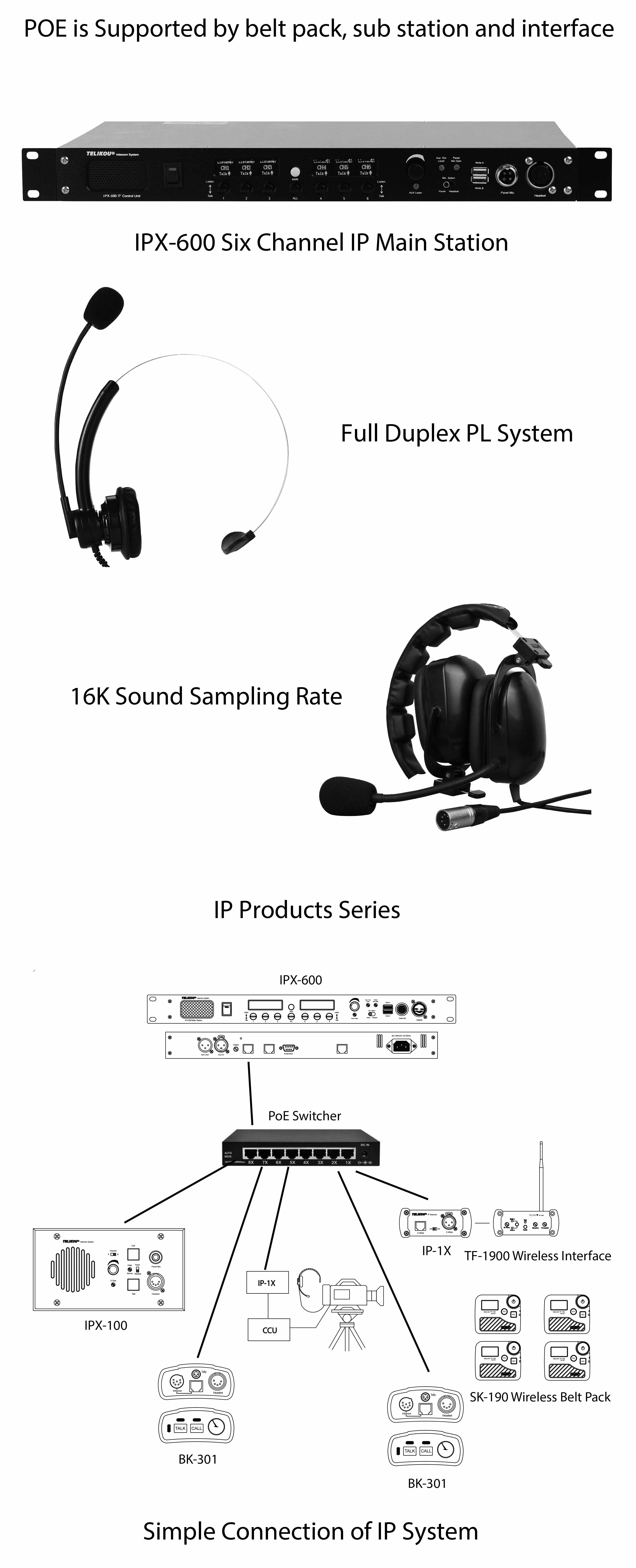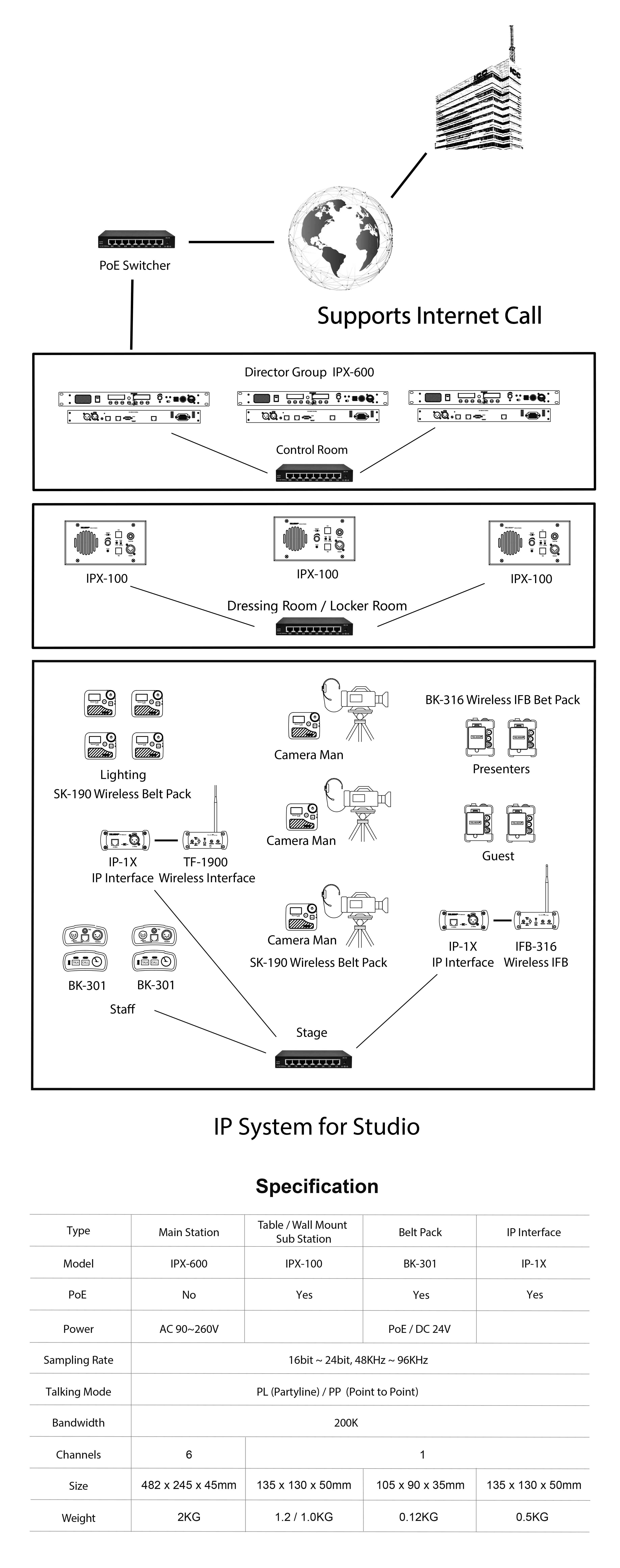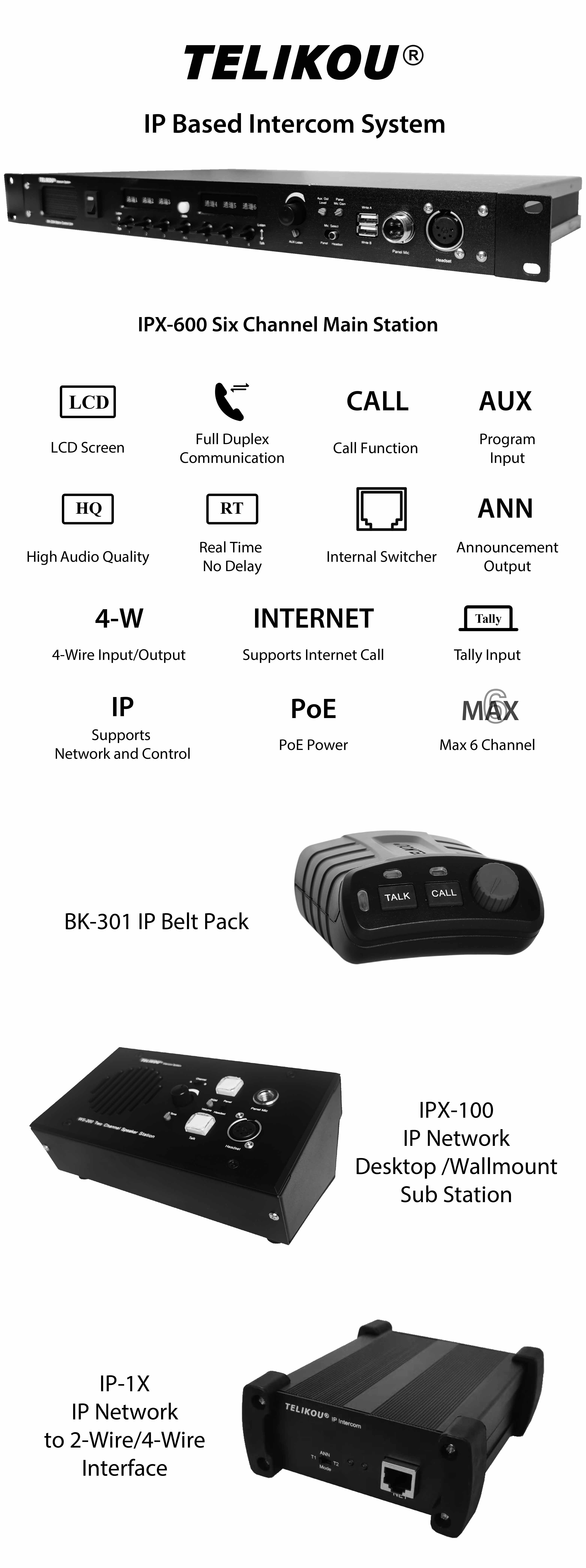 - Six IP Channels support Point to Point and Party Line model.